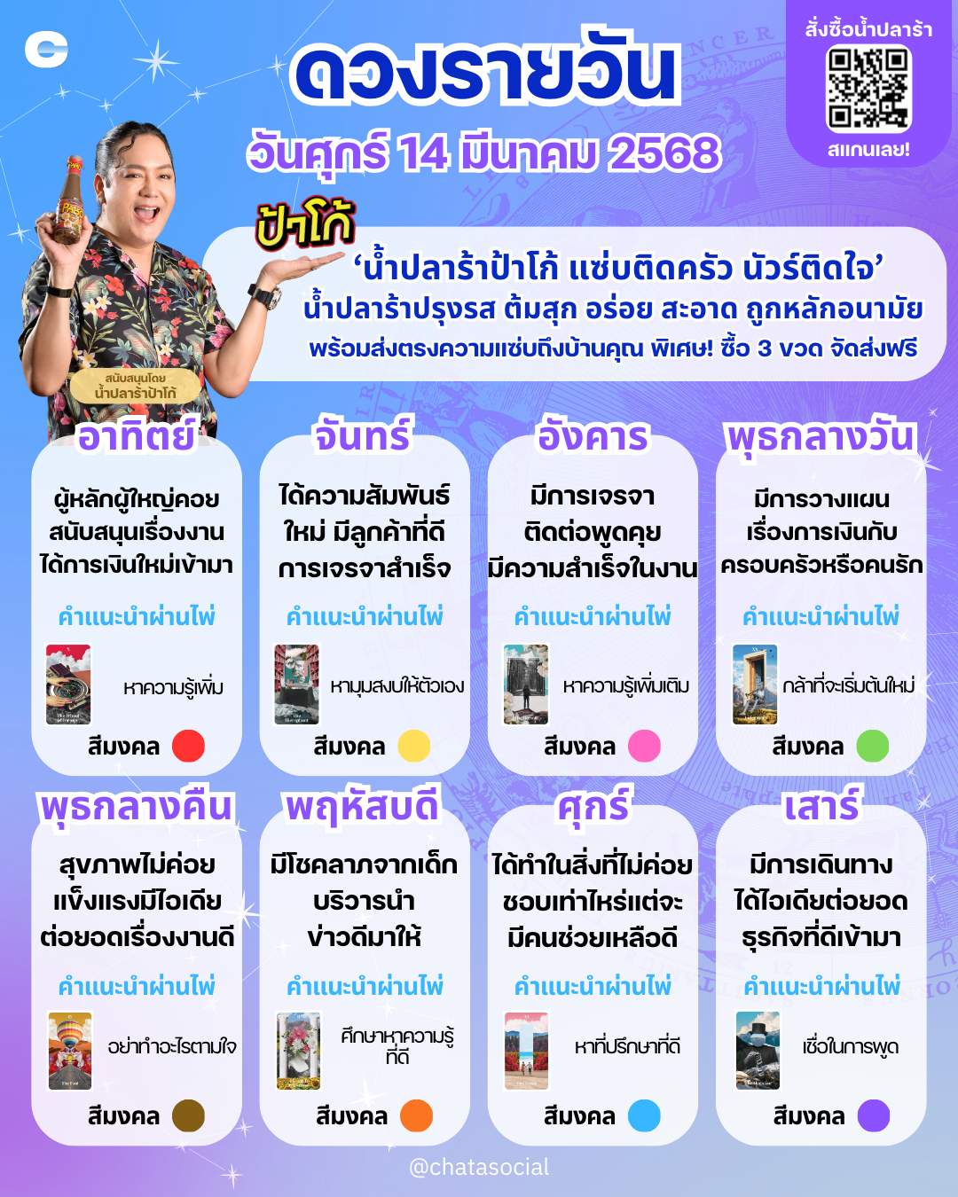 ดูดวงประจำวัน กับชะตา Chata social ดวงรายวัน วันศุกร์ที่ 14 มีนาคม 2568